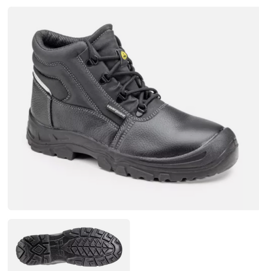 Le Professionnel 97En stockChaussure de sécurité à la cheville, en cuir imprimé hydrofuge, couleur noir, doublure en tissu. Confort : Antistatique, antichoc, anti-glisseme...
