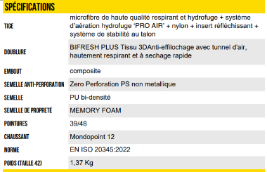 Le Professionnel 97En stockNORME: EN ISO 20345:2011 TIGE: cuir hydrofuge DOUBLURE EXTERIEURE: synthétique respirant DOUBLURE INTÉRIEURE: TEXELLE 100% polyamide, respirant, ab...